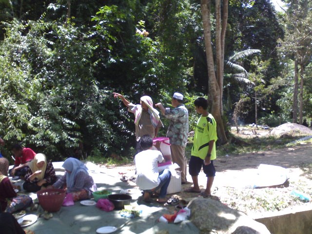 PENDUDUK KAMPUNG SEDANG MENYIAPKAN MASAKAN UNTUK MAKAN TENGAHARI