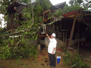 En.Mohd Hassan Mohd Rawther, MKK kg.Lanai membawa YB melawat rumah yang terlibat dalam kejadian ribut. |