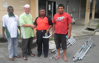 YB Cikgu Johari menyerahkan khemah canopy kepada seorang MKK. |